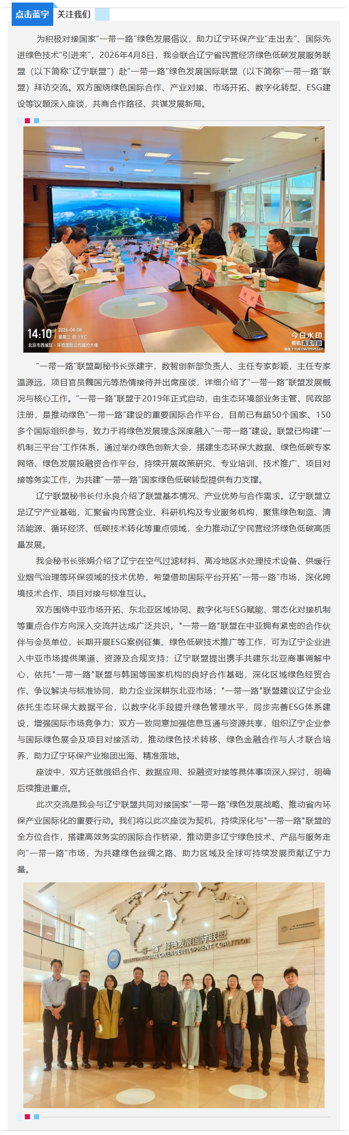 深化对接谋合作 携手出海拓新局——我会联合辽宁省民营经济绿色低碳发展服务联盟赴“一带一路”绿色发展国际联盟交流座谈