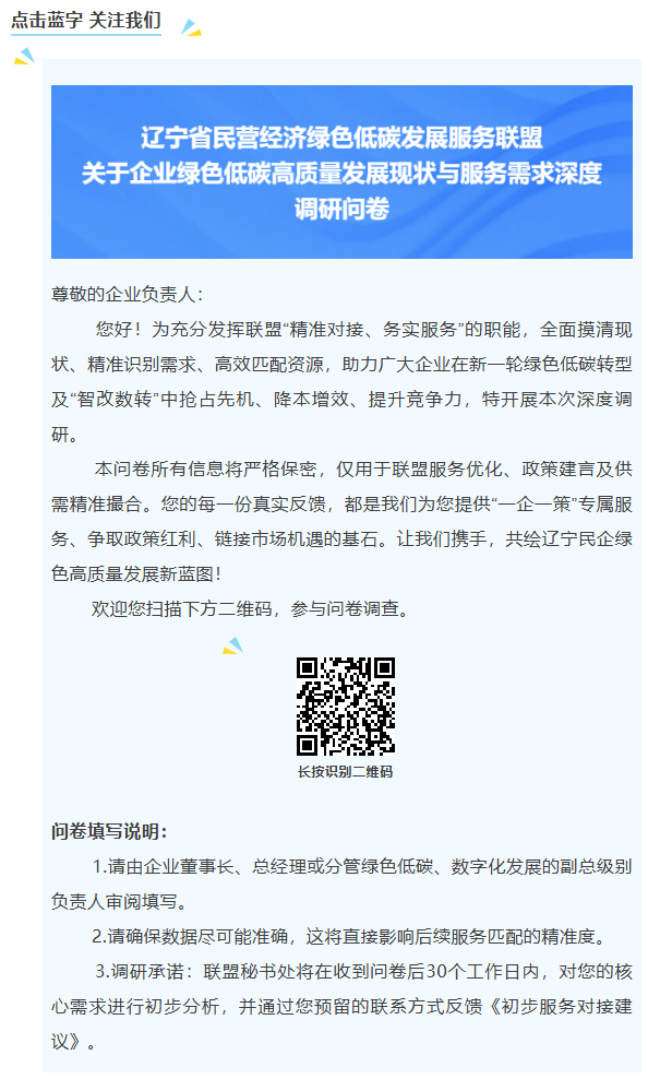 调研问卷丨辽宁省民营经济绿色低碳发展服务联盟关于企业绿色低碳高质量发展现状与服务需求深度调研